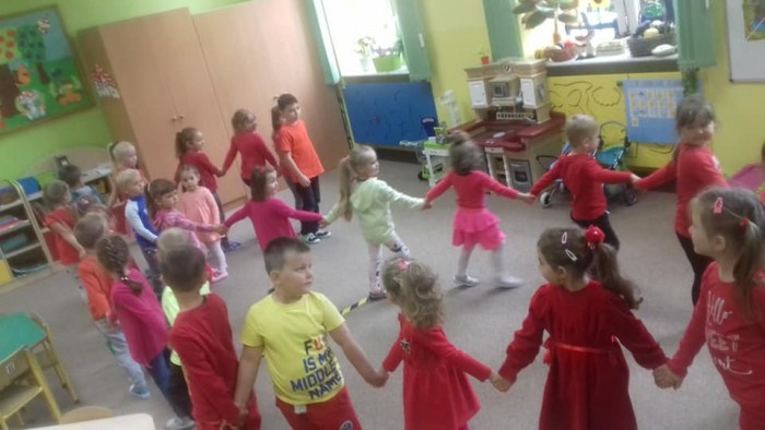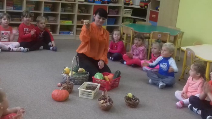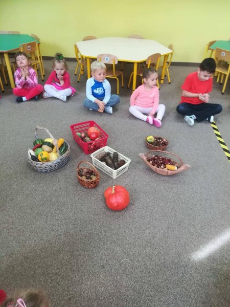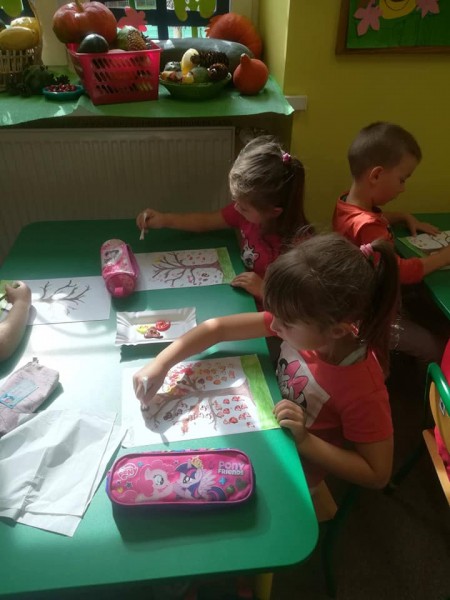 23 września zgodnie z tradycją w naszym przedszkolu odbyło "Powitanie Jesieni". Celem zabaw związanych z tematyką jesienną było poznanie: kolorów jesieni, darów jesieni, utrwalenie pór roku,czy integrowanie się dzieci wykonując wspólne zadania. Dzieci z grup Jeżyki i Muchomorki otrzymały List od "Pani Jesieni",w którym przekazała Przedszkolakom zadanie do wykonania. Dzieci szukały ukrytych kopert w których były zadania i części obrazka. Dzieci dzielnie i z zapałem odszukały koperty i utworzyły piękny obrazek jesienny. Poprzez zabawy dydaktyczne poznały oraz utrwaliły nazwy owoców oraz warzyw, które jesień przynosi nam w darzę. Chętnie uczestniczyły w zabawach muzyczno -ruchowych. Na koniec dzieci wykonały piękne, kolorowe drzewa jesienne. Był to kolorowy ,barwny i wesoły dzień w przedszkolu.